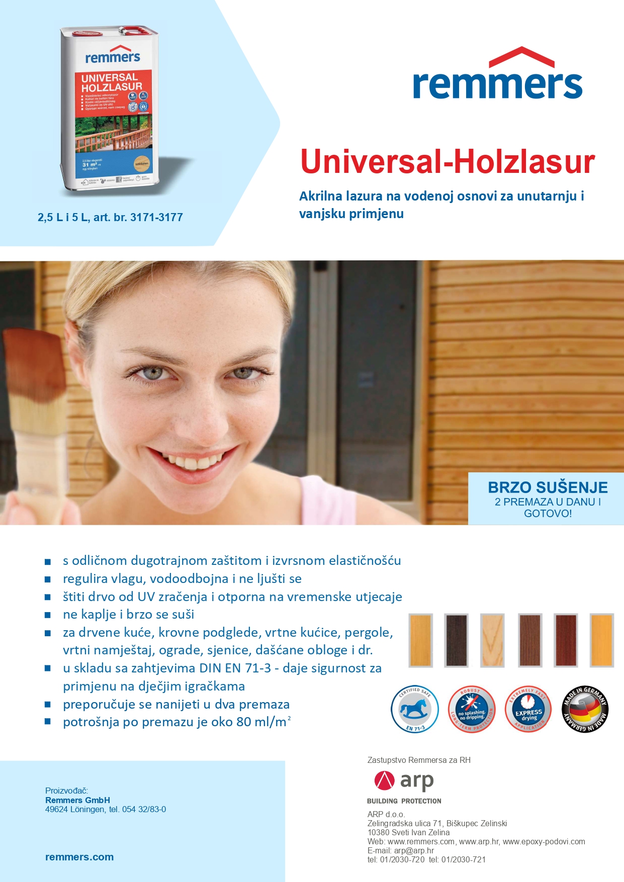 Oko 80 ml/m² po premazu, nerazrijeđeno