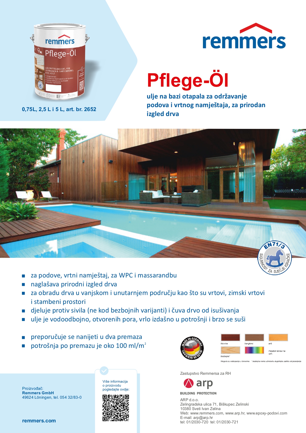Ovisno o upojnosti drva, 60 – 80 ml/m² po radnom koraku Kod obnove je dovoljan jedan premaz.
